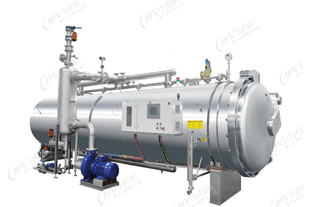 肉類、水產類及某些蔬菜罐頭是低酸性食品,微生物抗熱性強,故要采用較高溫度。通常高于100℃,最高達121℃,殺菌時間也要相應延長。因此多選用殺菌釜進行高溫加壓殺菌。可根據產品特性和工藝要求選擇蒸汽、水浴、噴淋、旋轉等殺菌方法,自行設定殺菌溫度、時間和壓力。